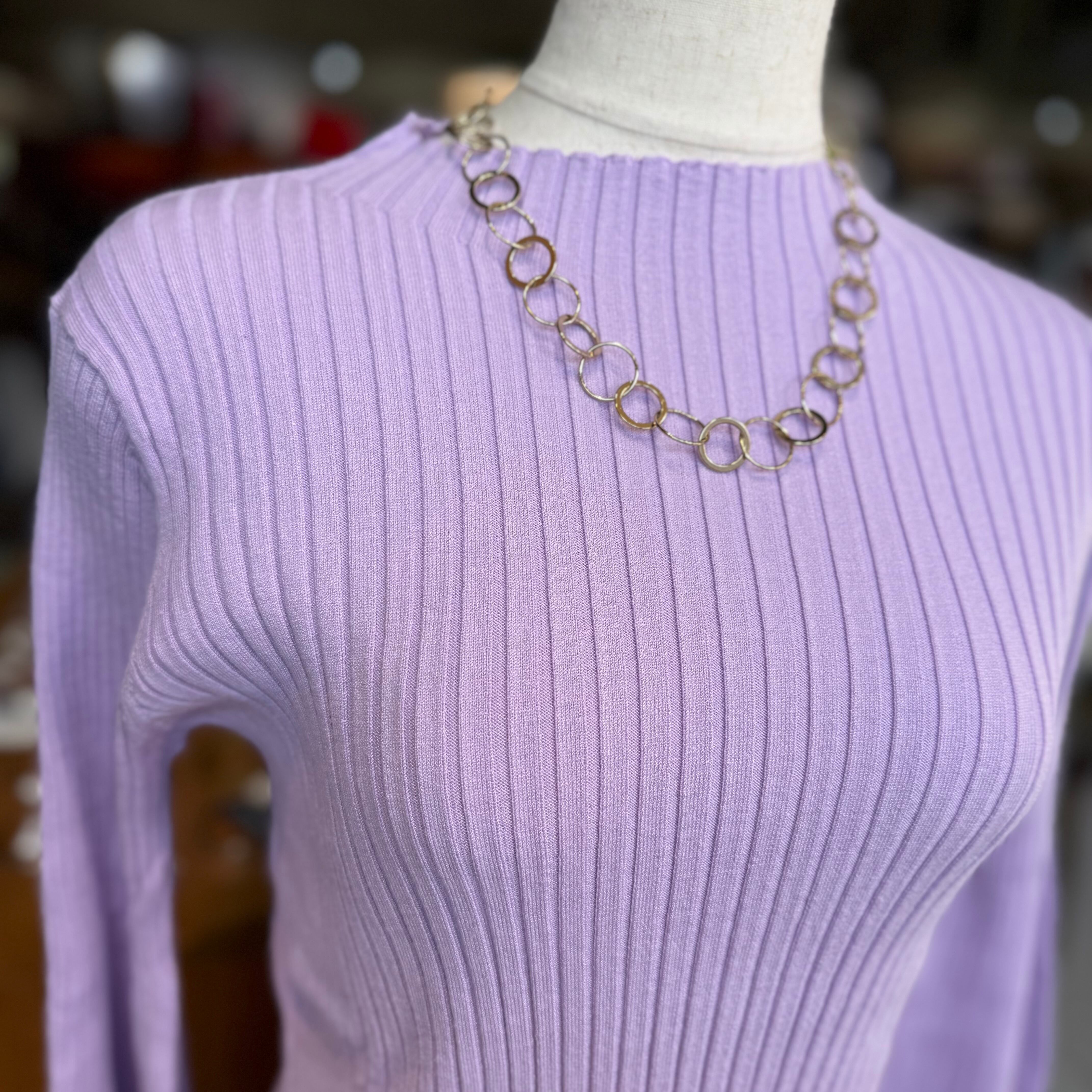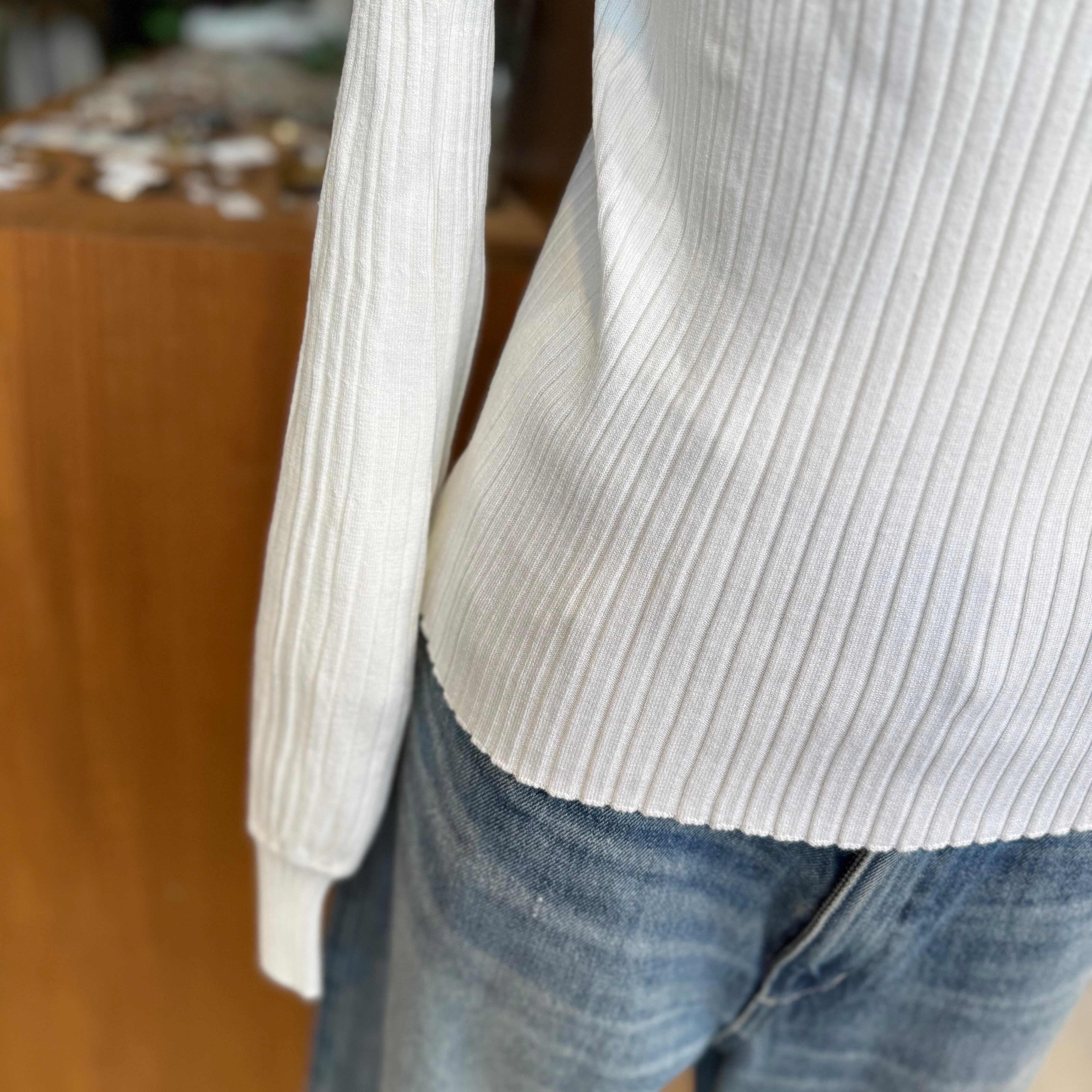 ストレッチ性も抜群で着心地の良さもポイントです。また、体に程よくフィットするリブ編みがスタイルを美しく引き立て、どんなボトムとも合わせやすくなっています。季節を問わず活躍する一着で、デイリーユースにも特別な日にも幅広くご利用いただけます。