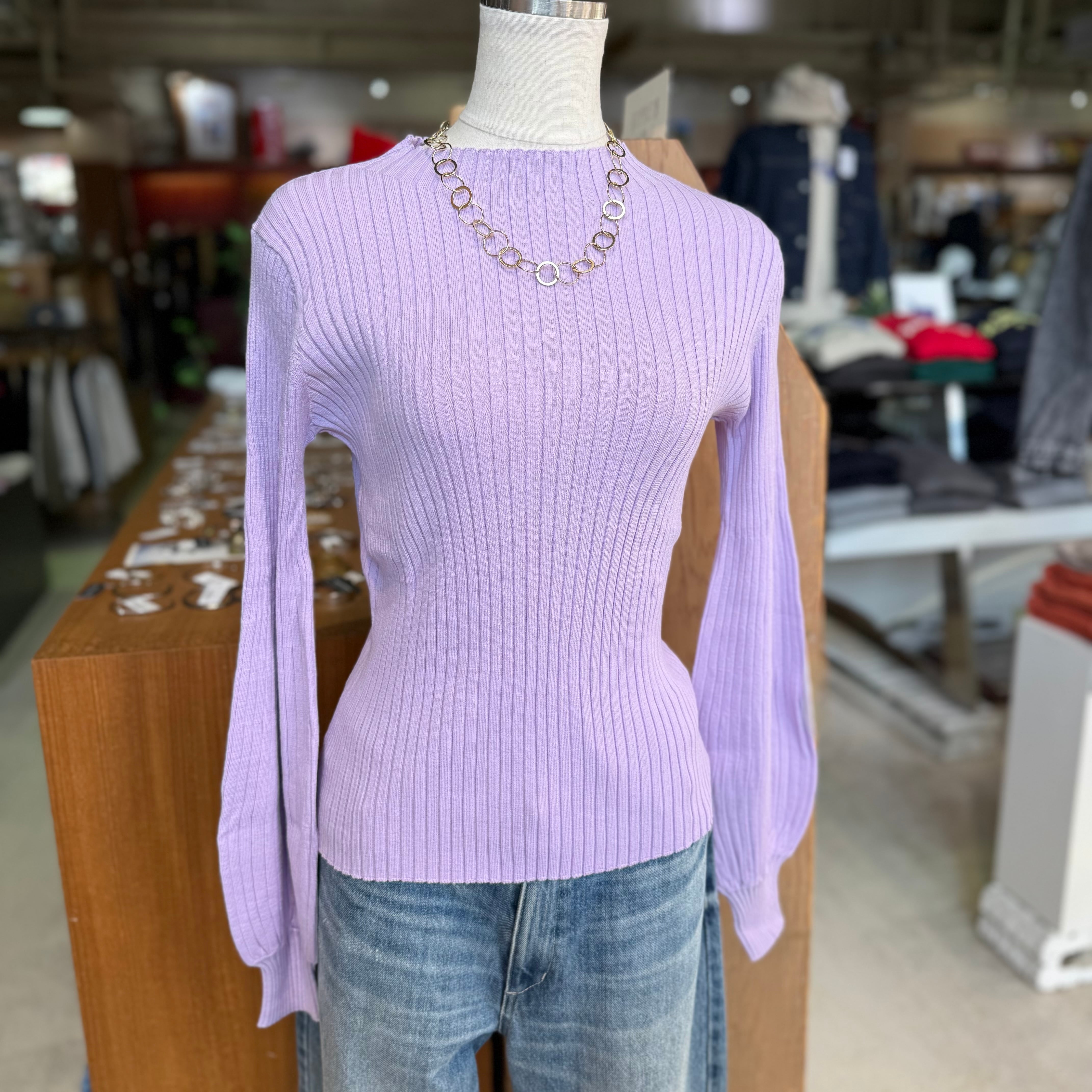マリードールの定番商品 ハイネックパフスリーブニットです。