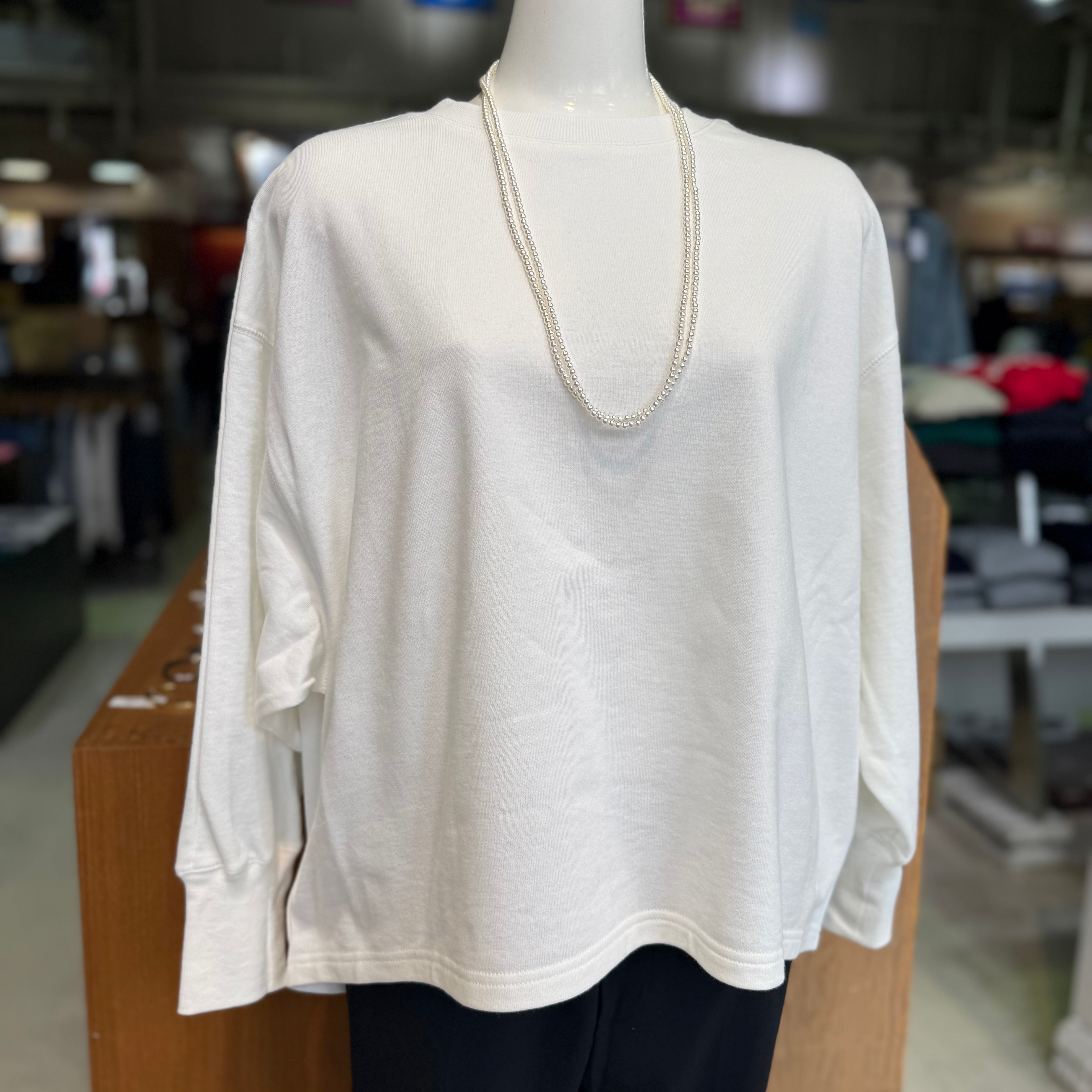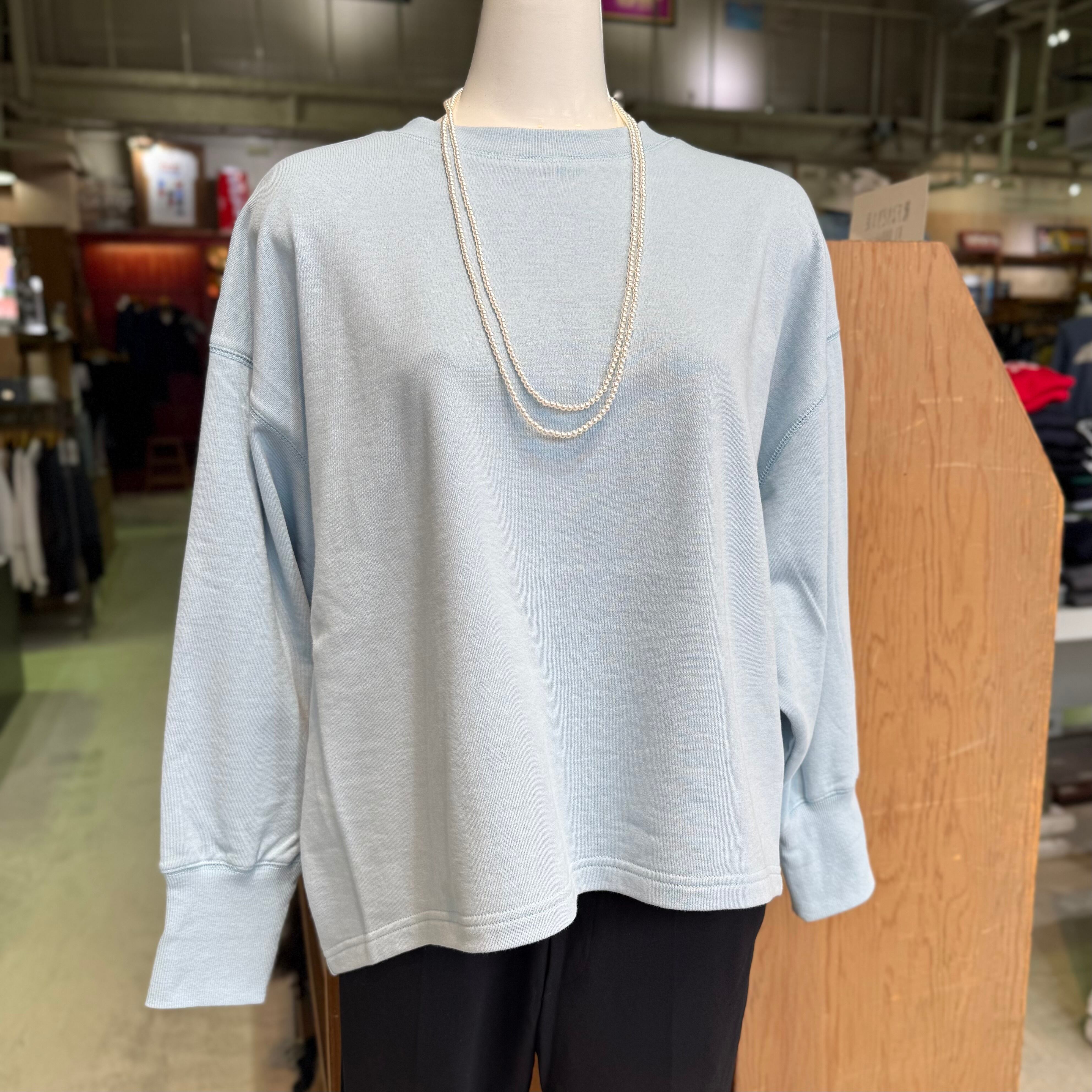 リラックス感とスタイリッシュさを兼ね備えたドルマンスウェットです。ミニ裏毛素材を使用し、優れた肌触りと軽やかな着心地を実現しています。ドルマンスリーブのデザインにより、動きやすさも抜群で、デイリーユースに最適なアイテムです。