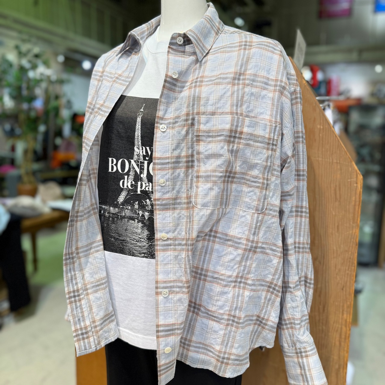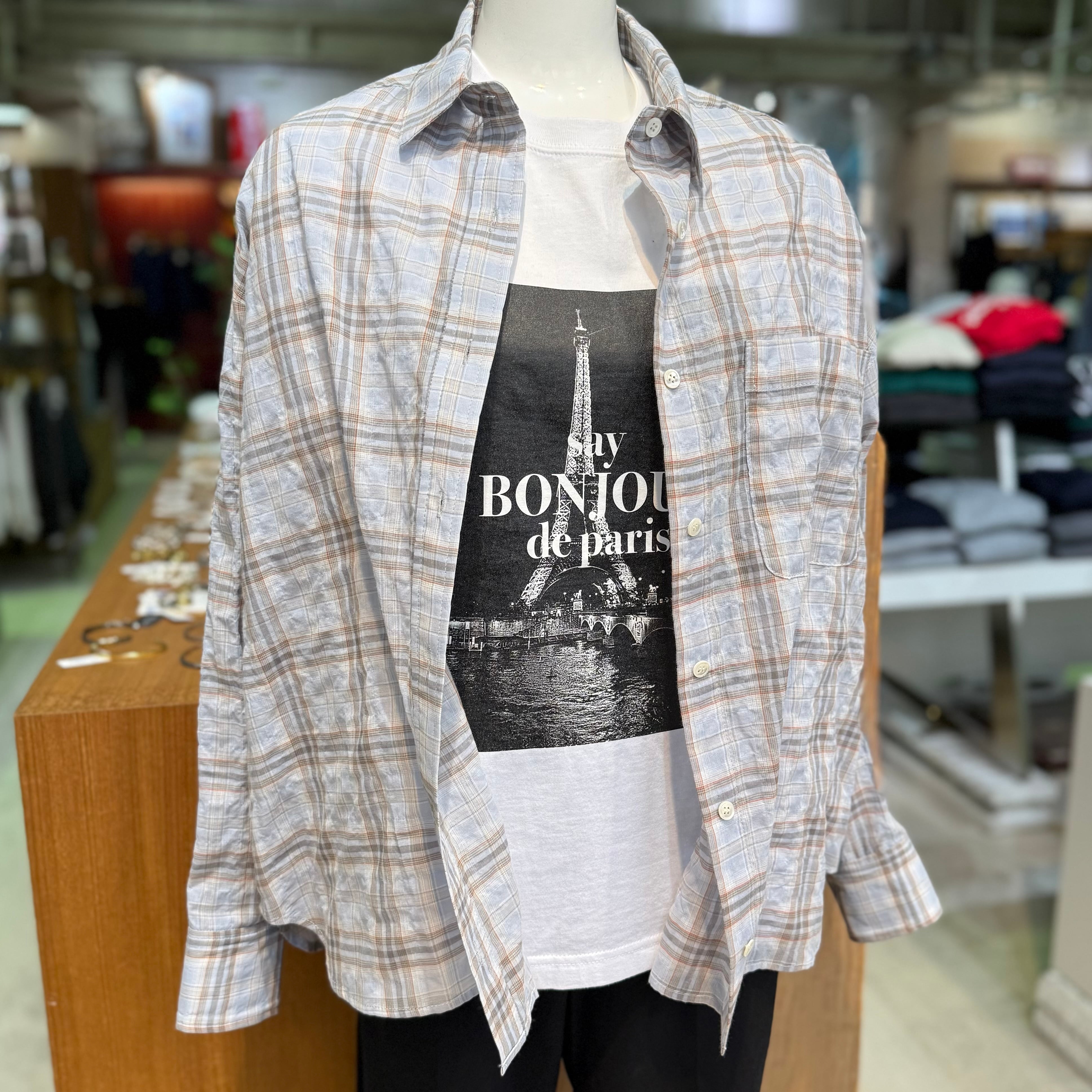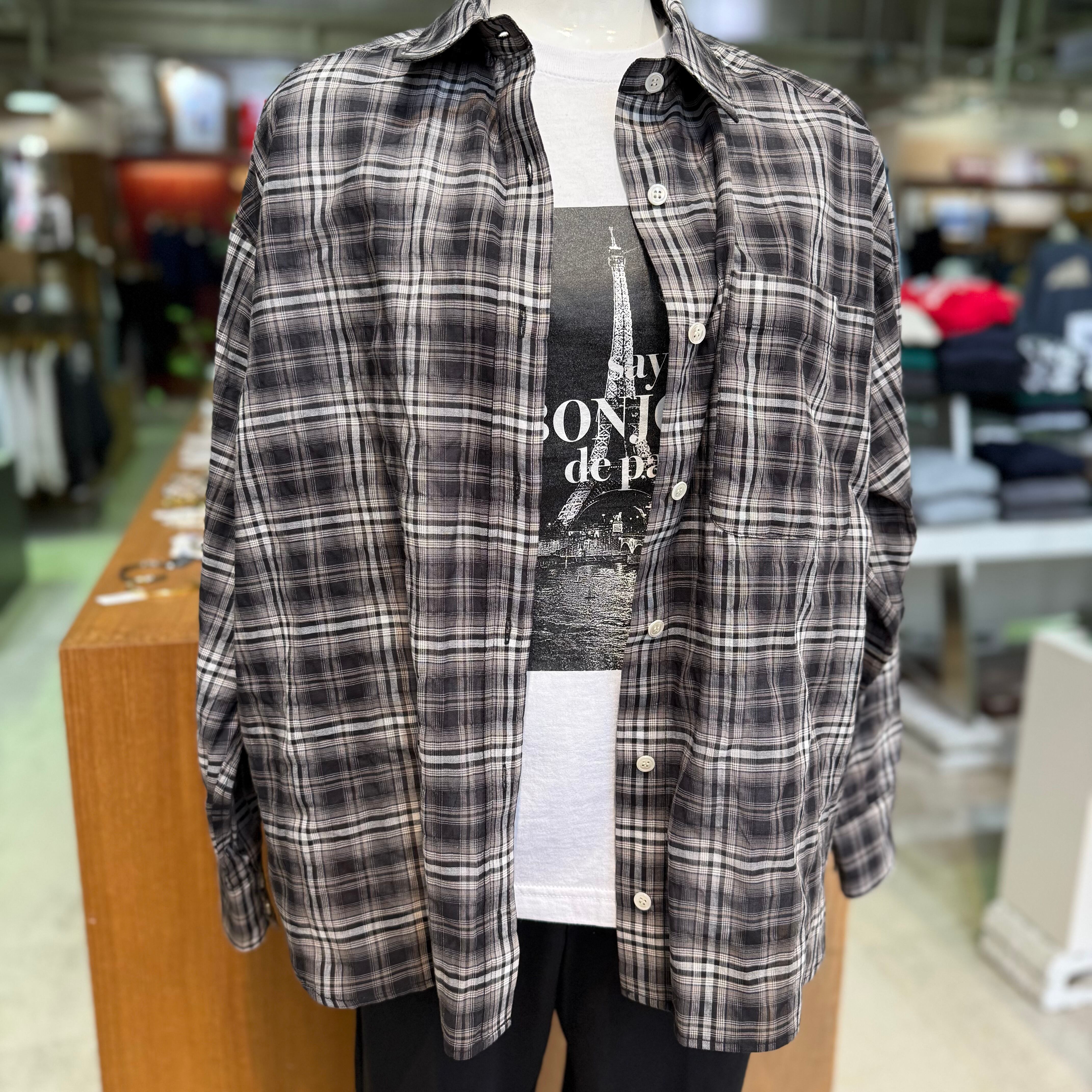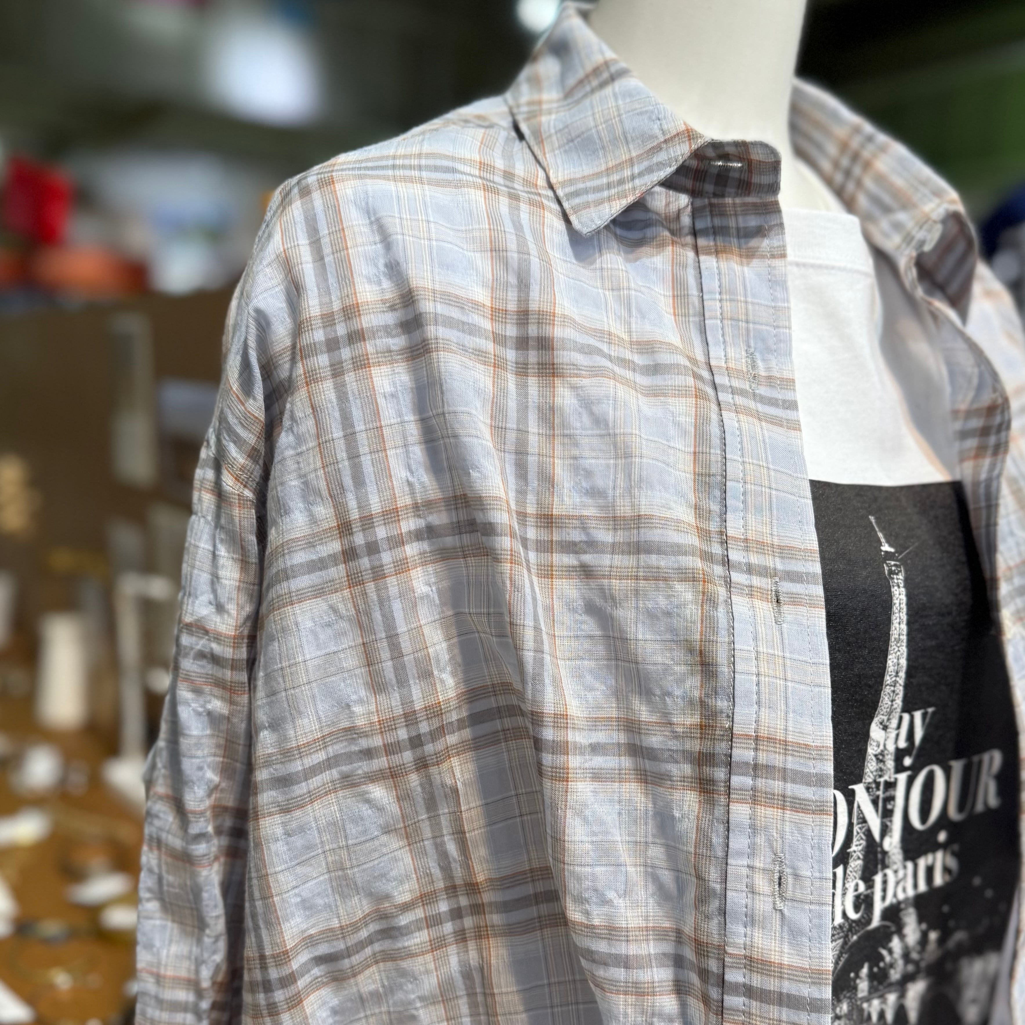 程よい透け感と軽さが特徴の、ライトシアー素材を使用したチェックシャツ。