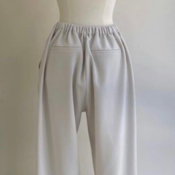 ウエスト後ろゴム仕様、ポリウレタン9%混のストレッチのきいた素材を使用しノンストレスな履き心地を実現。フロント部分はスッキリとしたデザインでキチンと見えします。
