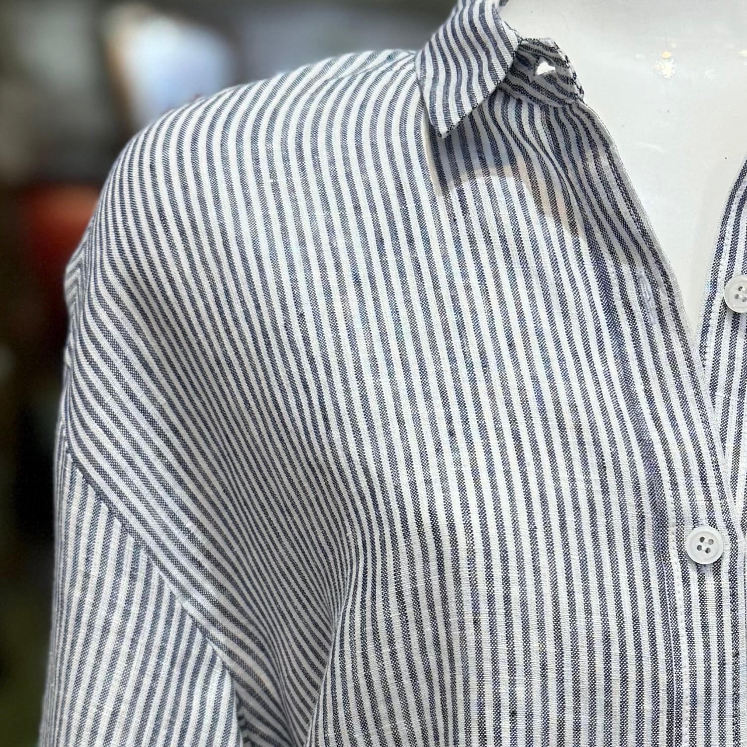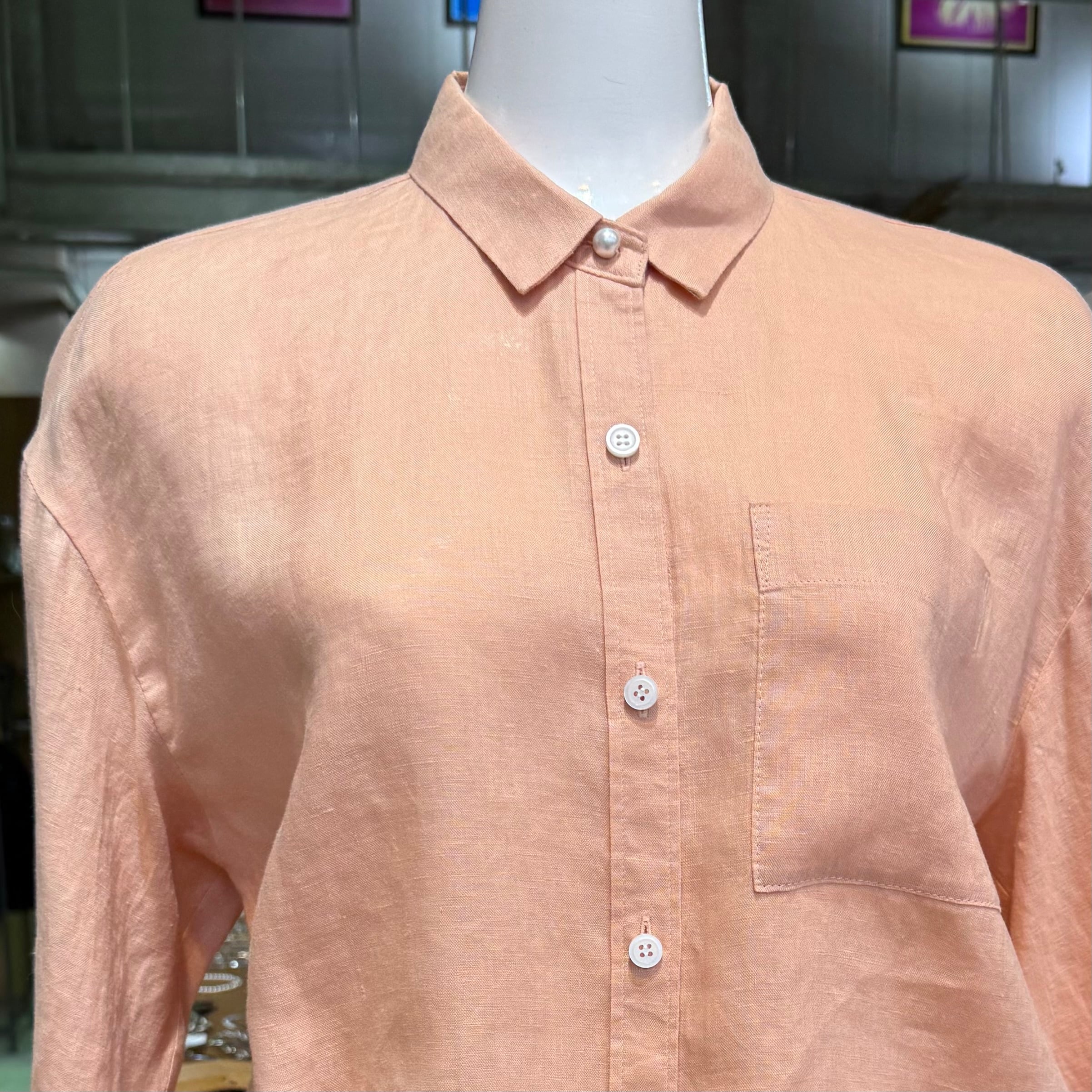 このシャツは、リネン特有の軽やかな風合いと通気性が特徴で、リラックスしたスタイルを演出します。シンプルながらも洗練されたデザインで、カジュアルコーディネートに上品さを加える一枚です。