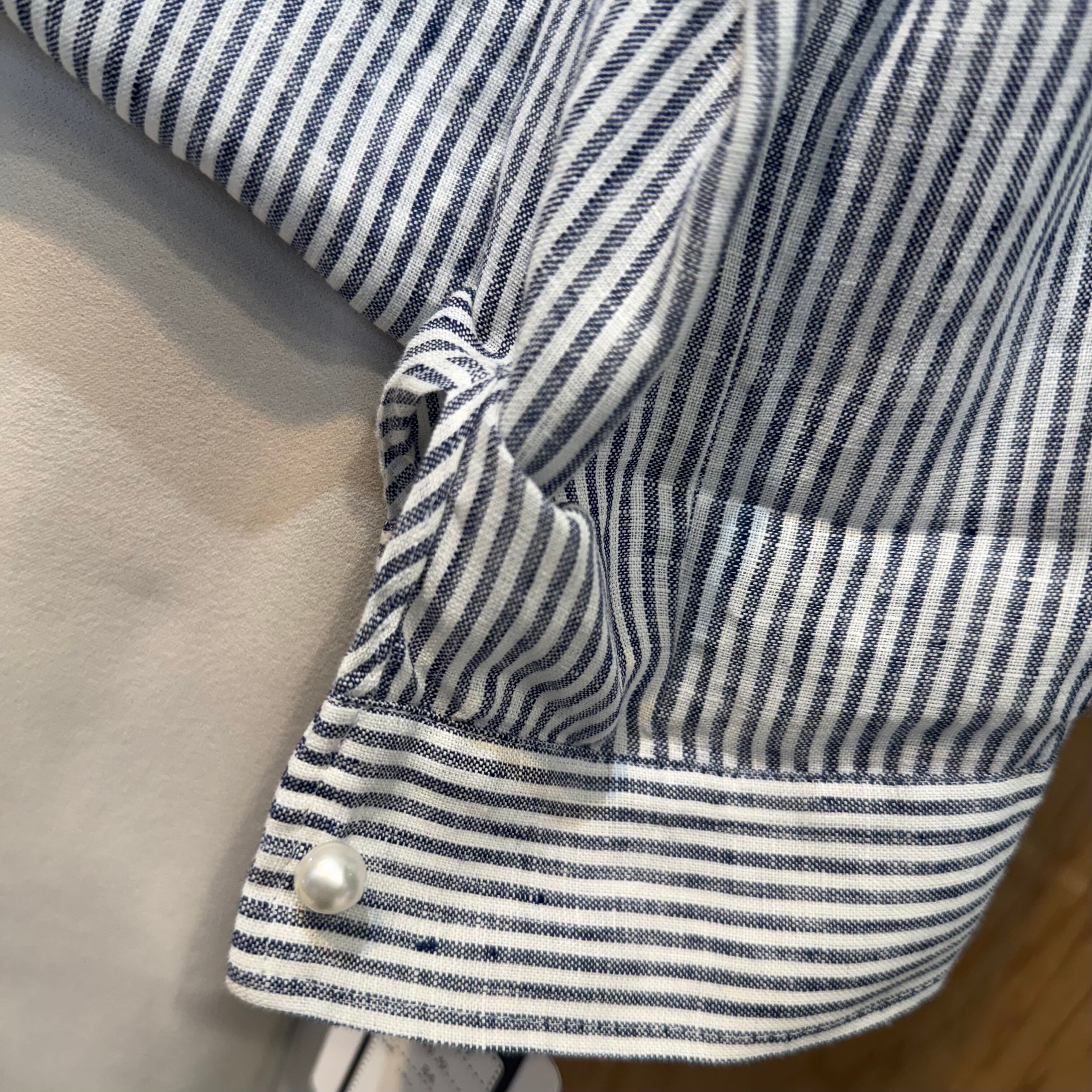 肌触りのよいフレンチリネンを使用した、BLUE FRONCE ブルーフロンセ フレンチリネンシャツ 621417。