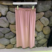 シーンを選ばないウエストゴムのストレートロングスカート。