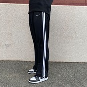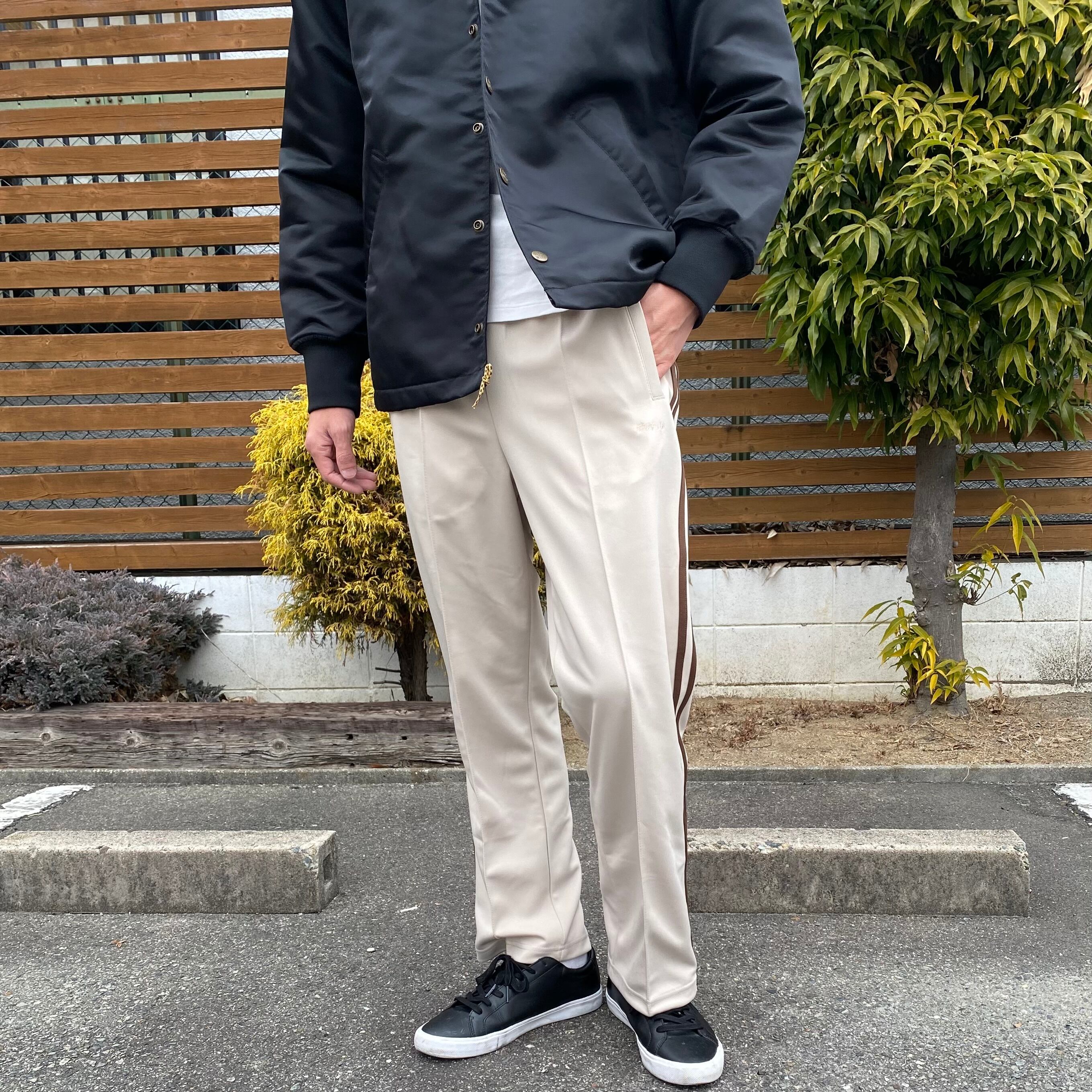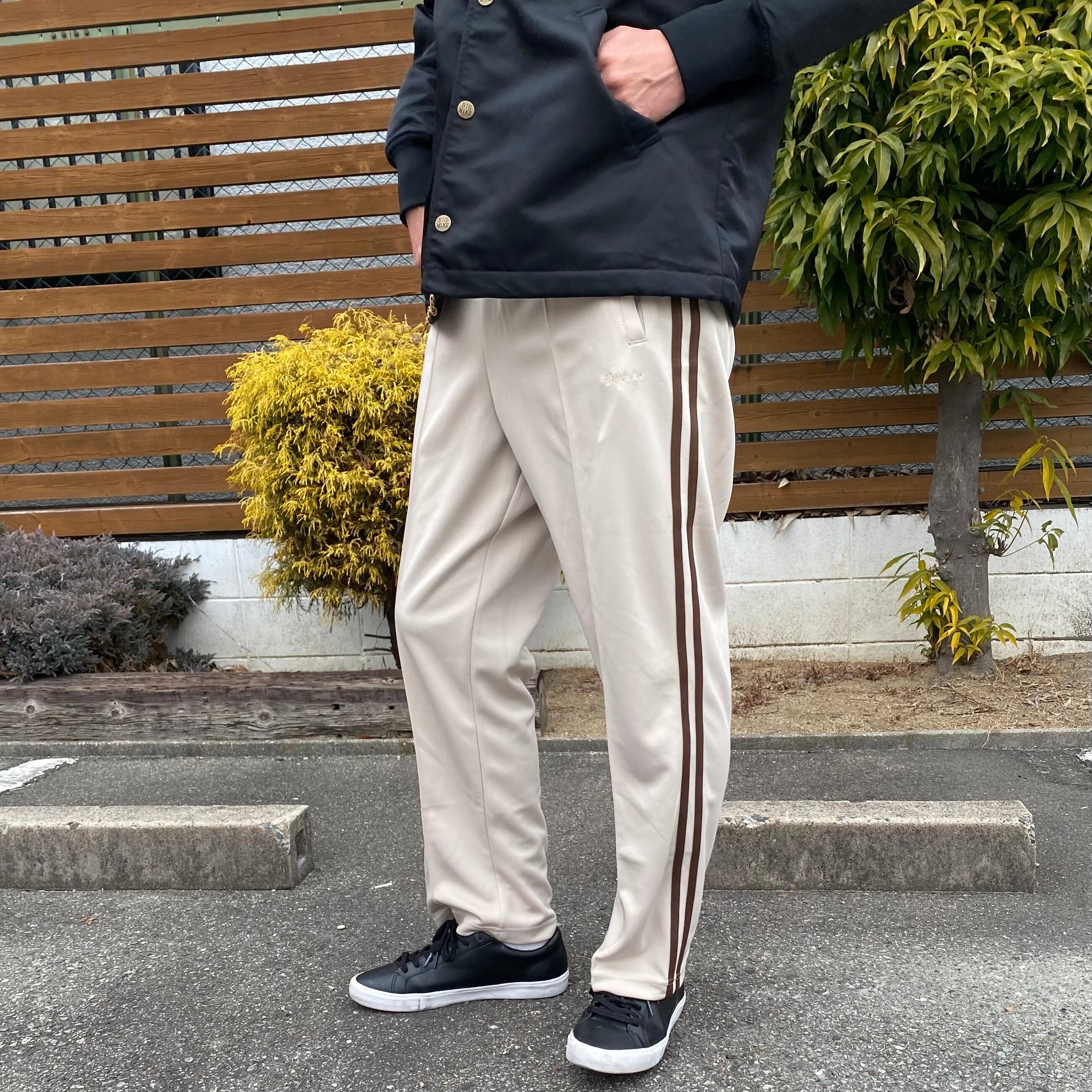 細すぎず太すぎず、快適に身体を動かせるサイズ感で設計したトラックパンツ。心地よいフィット感はまさに「今欲しいシルエット」でありクラシカルな雰囲気もたっぷりです。ウエストゴムなのでスポーツシーンでも安心して着用することができます。ポリエステル素材のスムース生地を採用しているため、肌ざわりが良く伸縮性や通気性も抜群のジャージ。